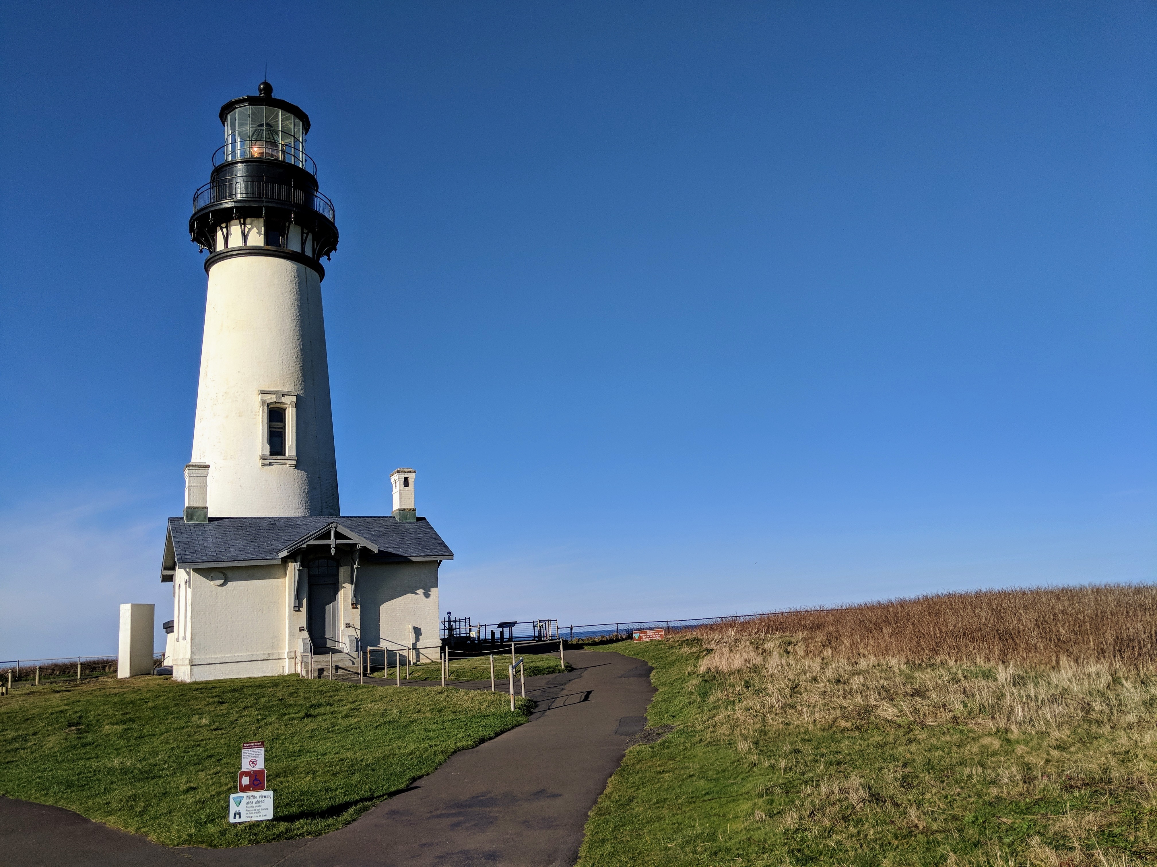 We then headed north on US. Route 101 toward Newport, Oregon, where had our final stop on the trip: Yaquina Head Lighthouse (750 NW Lighthouse Dr, Newport, OR 97365). Built in 1872 and standing 93 feet (28 m) tall, Yaquina Head is the tallest lighthouse in Oregon. Dogs are not allowed on the path directly next to or inside the lighthouse, but it is a dog friendly area otherwise. Please also note the $7 entry fee per vehicle.